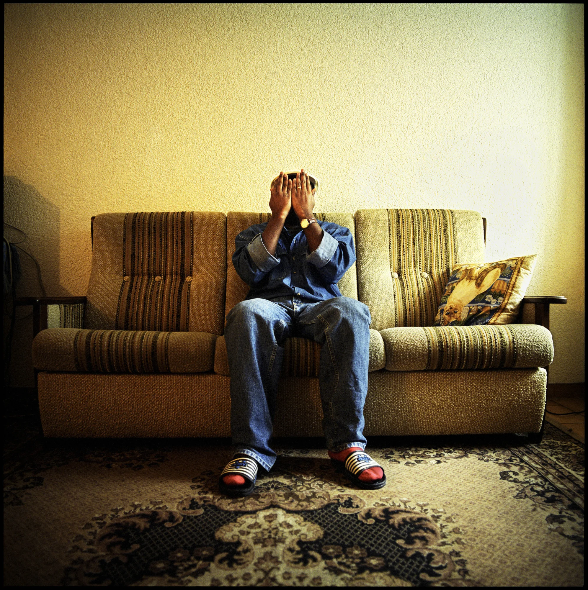 Salon d'un couple de requérants d'asile originaire d'Angola. Ils n'ont plus droit à l'aide sociale depuis mars 2008 et ont reçu une lettre d'expulsion de leur appartement. Sans revenus, leur perspective est d'aller vivre dans un des foyers gérés par l'entreprise privée, ORS Service AG, qui encadre les requérants d'asile dans le canton de Fribourg. Fribourg, mars 2008.