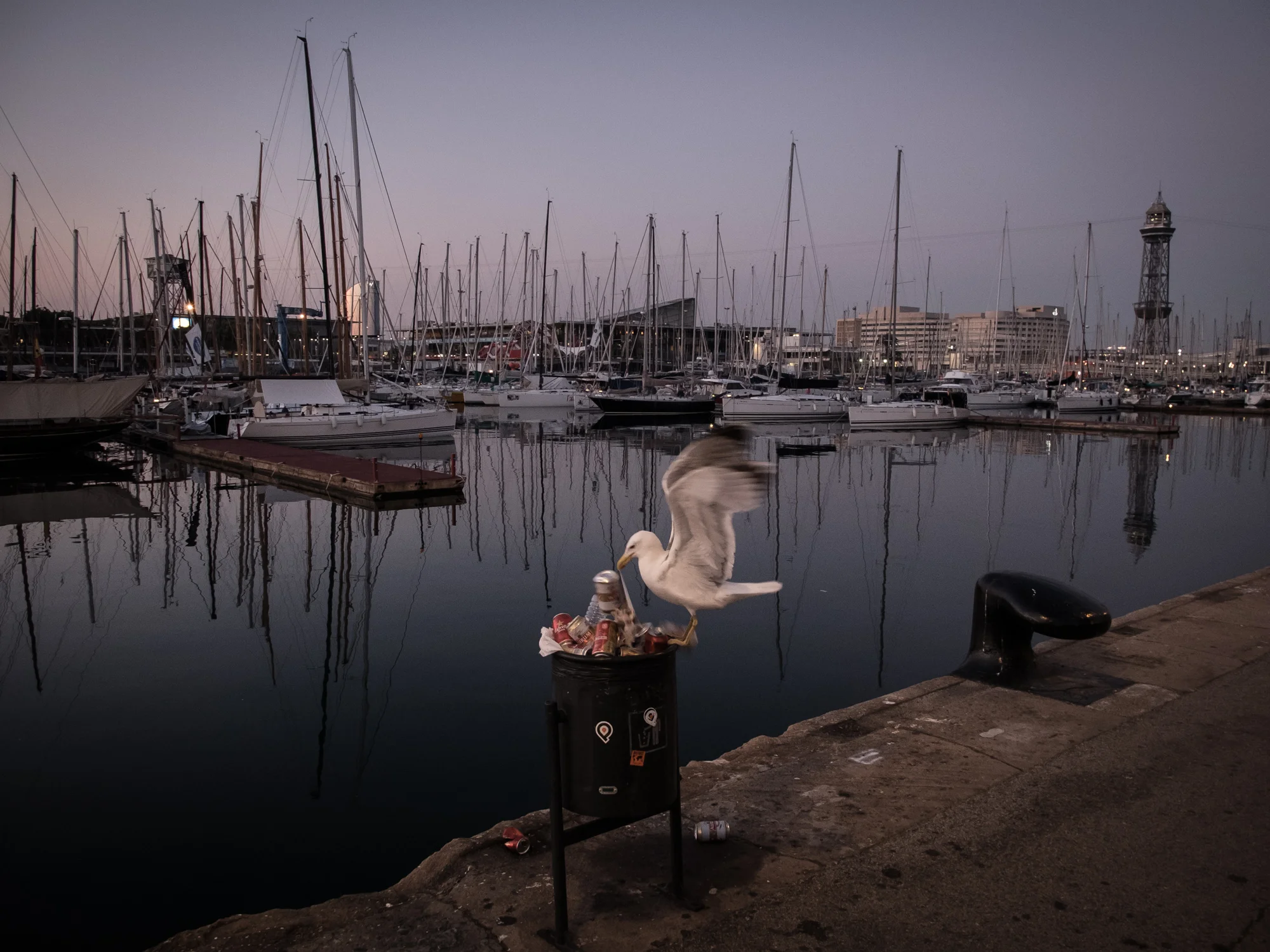 Suivant humblement les pas de Cartier-Bresson, saisissant des instants anodins, voici donc une première photographie pour ma « chronique ». Il s’agit d’une drôle de rencontre, au petit matin, dans le port de Barcelone, de retour d’un festival de musique électronique.