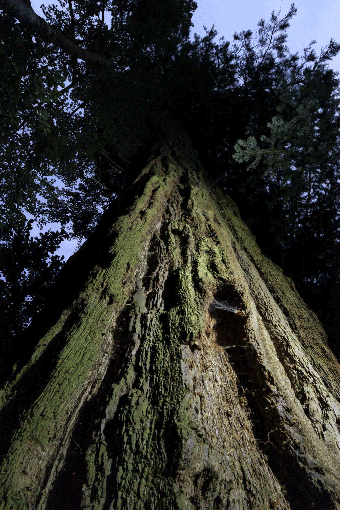 “Déjà un géant, ce jeune arbre fut sans doute cultivé à partir de graines ramenées en Europe au XIXème siècle depuis le nord-ouest de l'Amérique. Personne n'avait cru aux histoires des rapatriés du "Far West" selon lesquelles des arbres poussaient là-bas aussi larges que des maisons. Seul un énorme disque d'un tronc, embarqué comme preuve pour l'Exposition universelle de 1889 à Paris, et l'émergence de la photographie en apportèrent la preuve. Seul l'avenir nous dira si ces géants peuvent vieillir dans notre pays autant que dans leur patrie, soit plus d'un millier d'années.”